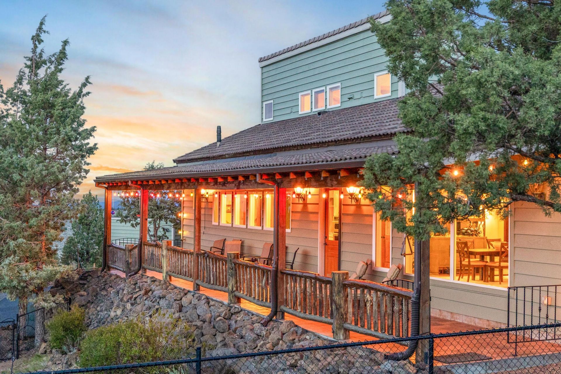 Sophistication meets serenity in this hillside masterpiece, perched atop 3.1 private, acres with rare, unobstructed views stretching from Mt. Bachelor to Mt. Adams with additional vistas of Smith Rock and the Ochocos- truly a top of the world setting.Designed to showcase its surroundings, the home features multiple outdoor living spaces- enjoy sweeping views from the covered front patio or unwind in complete privacy on the secluded rear patio surrounded by natural lava rock flows.Inside, vaulted ceilings and expansive windows fill the open-concept living spaces with natural light, blending indoor and outdoor living. A sunroom offers year-round light-perfect for early garden prep or relaxing in the sun. The main-level primary suite provides comfort and convenience, complemented by a spacious office. Upstairs an ensuite guest bedroom ensures privacy for visitors.With fruit trees, a garden, and a separate workshop, and easy access to Forest Service and BLM trails, this property offer