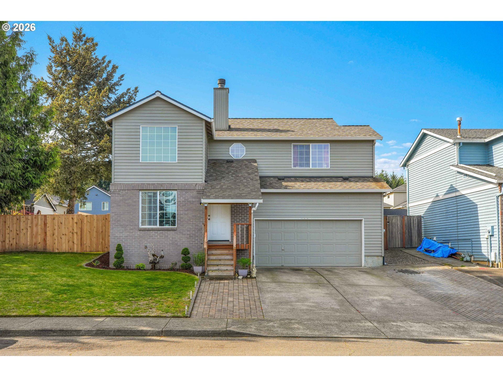This beautiful 3 bed 2.5 bath home is located within half a mile to schools and grocery stores. Huge primary suite with vaulted ceilings & walk-in closet. Living room has a cozy fireplace & vaulted ceilings. Large property with fully fenced backyard & oversized, attached garage. NEW fence just installed. Kitchen has stainless steel appliances. Ready to move in! Great floor plan!