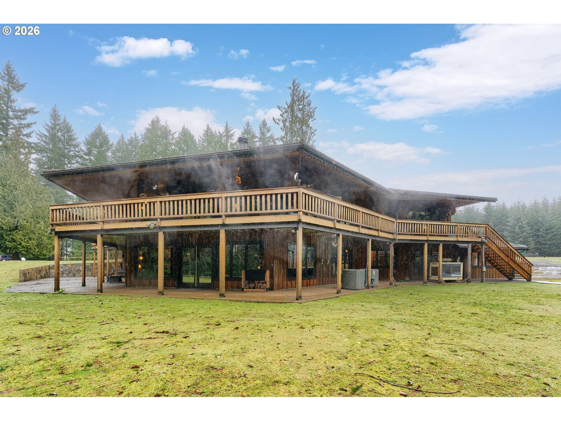 Tucked deep within towering forest on more than 40 pristine acres,this extraordinary lodge-style estate feels like a private wilderness retreat.The moment you step inside,the warm aroma of cedar and sweeping forest views create an immediate sense of tranquility and connection to the surrounding landscape.Designed with remarkable craftsmanship and thoughtful detail,the custom home features soaring vaulted ceilings,exposed beams,cedar tongue-and-groove interiors,and a striking floating staircase that enhances the home's warm lodge ambiance.Expansive windows and French doors invite the outdoors in,filling the home with natural light and woodland views.The dramatic two-story stone fireplace anchors the main living space and continues into the lower level,creating a stunning focal point on both floors.The renovated kitchen is designed for gathering, featuring a large island with seating, heated tile floors,and a hidden walk-in pantry with rolling ladder.French doors open to a spacious wraparound deck overlooking peaceful woodland scenery-perfect for entertaining or quiet mornings among the trees.Downstairs, a second full kitchen is complemented by a distinctive boat-shaped bar, along with a wine tasting room and wine cellar that elevate the home's entertaining potential.The grounds unfold like a private nature preserve with trails leading past two ponds, a natural beaver dam, and Sadd Creek.A forest garden grows saffron, medicinal herbs & more! The grounds support 28 varieties of edible mushrooms-creating a true forager's paradise.Outdoor amenities include a yurt, designated camping platforms, outhouses,gazebo,pavilion,sauna,outdoor soaking tubs,and three large insulated and heated shops.With its peaceful setting, unique gathering spaces,and unforgettable natural backdrop,this remarkable property offers exceptional potential to make it your own.This property has historically been utilized for wellness/private retreats & as a wedding venue.
