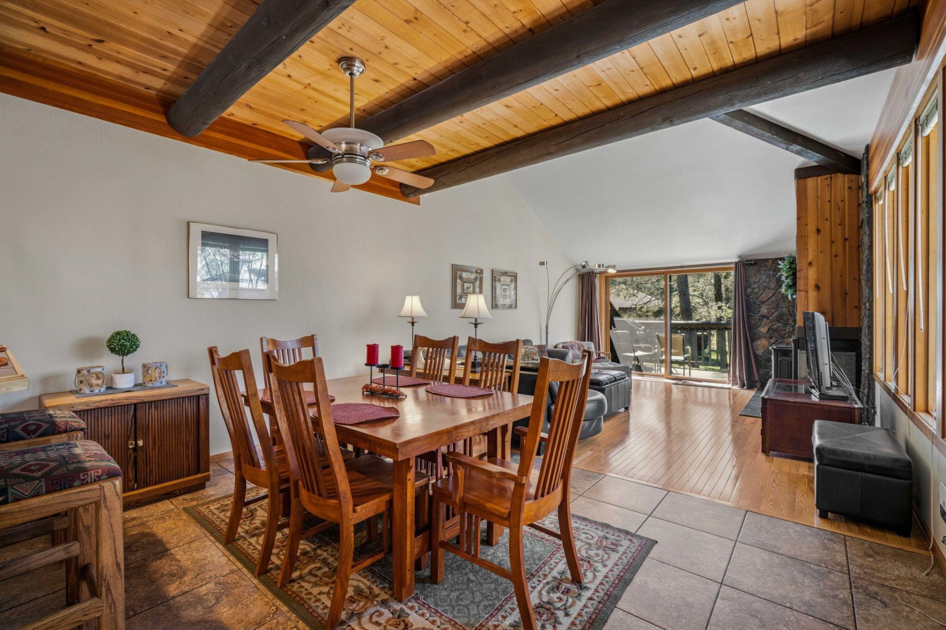 Welcome to turnkey EXECUTIVE #62 Wildflower, an exceptional Sunriver retreat. A tile entry, kitchen and dining flow into a warm living room with hardwood floors. The main level offers kitchen, dining, living, and a convenient half bath and laundry. Step out to the private deck--perfect for morning coffee, reading, or BBQs--and stay cozy on cool evenings by the pellet stove. Stay comfortable year-round with AC. Downstairs features two bedrooms, including a spacious primary with dual (separated) sinks and a tub/shower combo, plus a second bedroom with a dedicated hall bath. Ideally located in the heart of Sunriver, set back from the 13th hole of Meadows Golf Course, just minutes to SHARC and across from the Village at Sunriver. Established rental with Sunriver Resort.