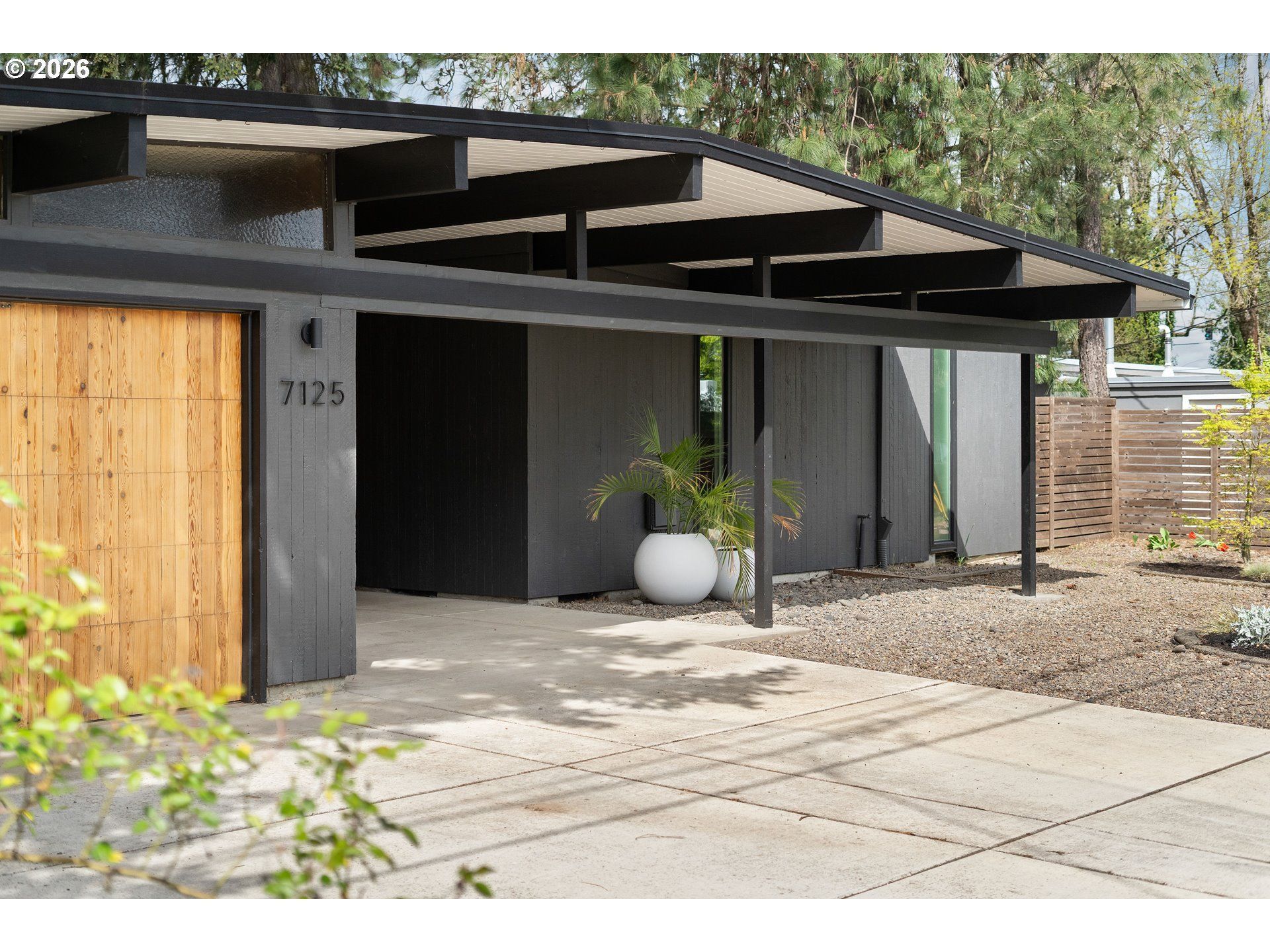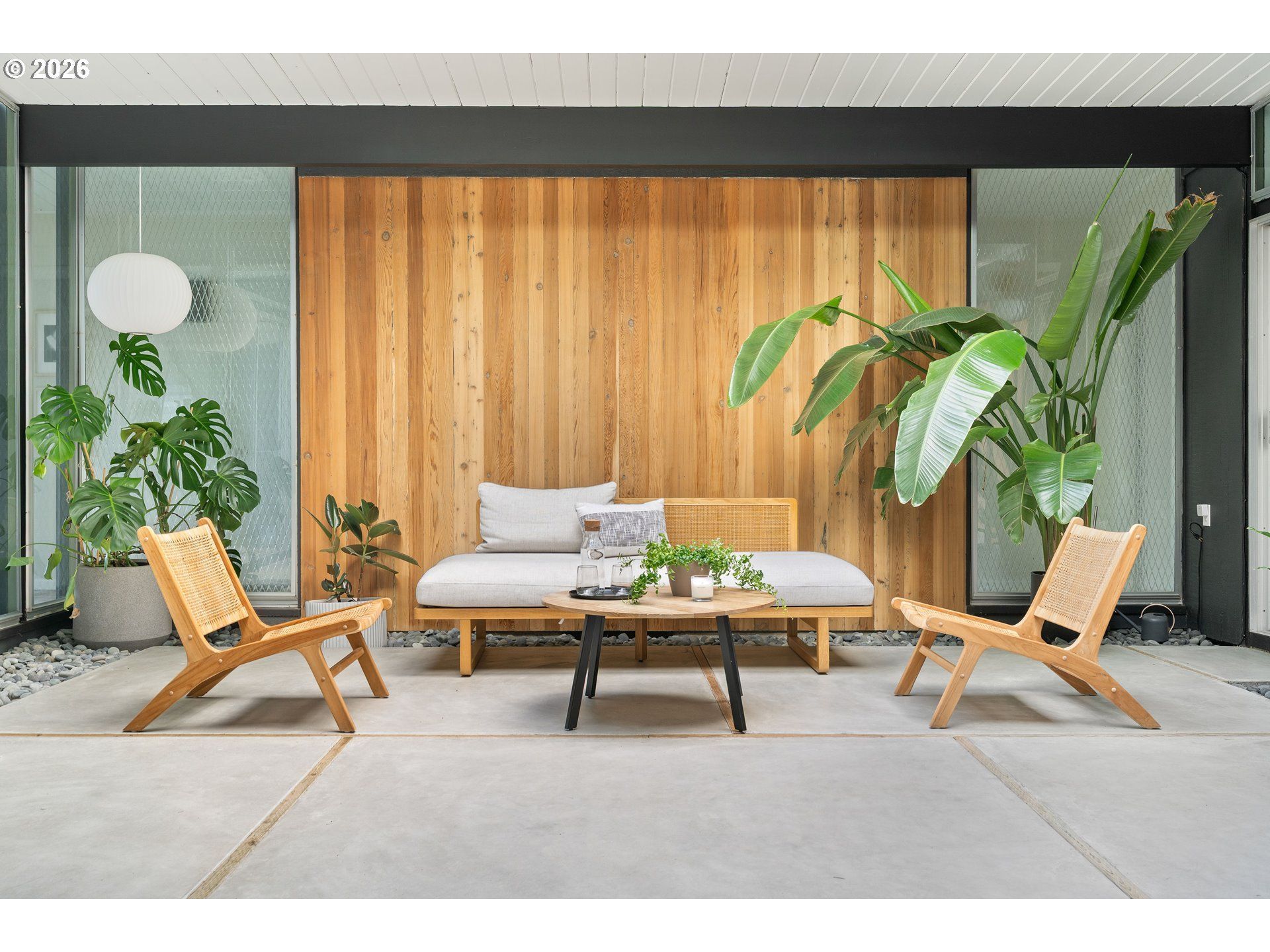 This one is special. This 1963 Rummer home has been thoughtfully reimagined to honor its original vision while elevating it for modern living. At its core, the home is organized around a central atrium, now redefined with new concrete and a triple-pane skylight that draws light deep into the interior. Throughout, the architecture does what Robert Rummer intended: dissolve the boundary between inside and out. Glass walls, exposed beams, and clean lines create a rhythm of light, shadow, and natural texture. The interiors have been carefully renovated with a restrained, design-forward approach. A fully updated kitchen anchors the main living space, opening seamlessly to dining and lounge areas. Bathrooms have been reworked with a modern, minimal palette, while new lighting, including Herman Miller fixtures, adds warmth and intention. Fresh interior paint and updated surfaces unify the home without overpowering its mid-century roots. Outside, the experience continues. The yard has been newly landscaped and features a newly poured driveway, fresh exterior paint, and clean-lined fencing that completes the composition. Behind the scenes, significant upgrades bring peace of mind: a new TPO roof, updated HVAC systems, a new electrical panel, and more, ensuring the home functions as well as it presents. With 4 bedrooms and 2 bathrooms, this is one of the largest Rummer floor plans, a rare opportunity to own a true Rummer that balances architectural integrity with a refined, modern sensibility.